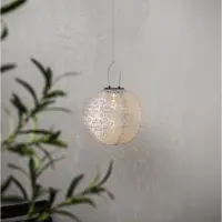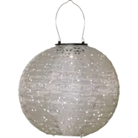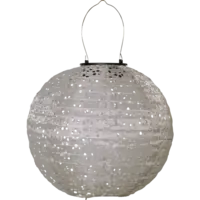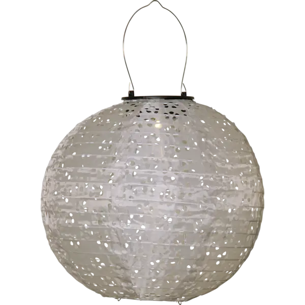 Solcellslyktan Festa är gjord av polyester med hålmönster som ger ett vackert skuggspel när den lyser i mörkret. Festa blir en vacker dekoration både i en trädgård, terrass eller balkong. Festa finns i 2 modeller och 3 färger, denna modell är ca 25 cm i diameter. Placera lyktan där solen kan nå panelen under dagen för att få ultimat laddning till det medföljande batteriet.