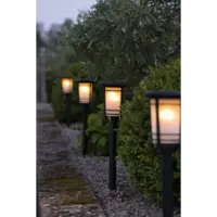 Solcellsdriven solcellspollare med 33 led som lyser med ett flammande sken när det är mörkt.