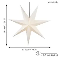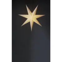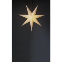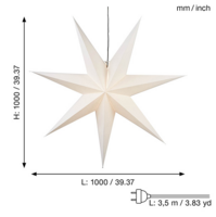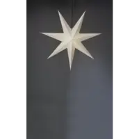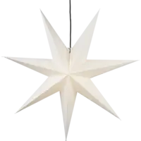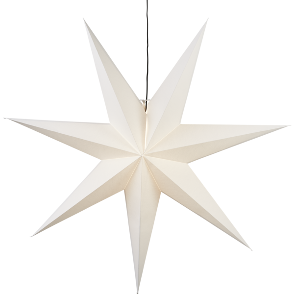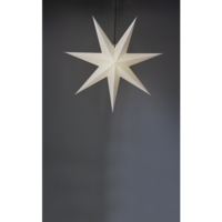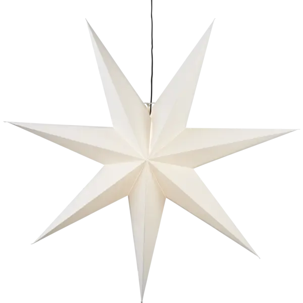 Vit pappersstjärna med svart textilkabel. Elegant stjärna att dekorera med i fönstret. Stjärnan har plats för en ljuskälla. Höjden är 100cm.