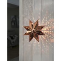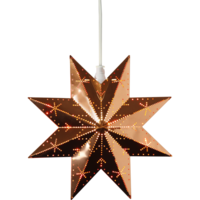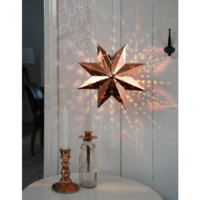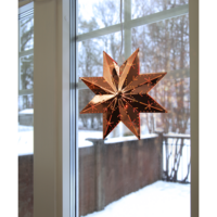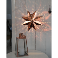 Vacker kopparfärgad metallstjärna för inomhusbruk. Stjärnan har fina detaljer och plats för en ljuskälla. Underbar adventsstjärna som sprider en härlig julstämning i huset. Tillverkad i Sverige.