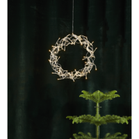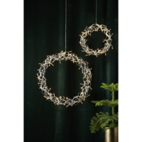 Vacker krans i silver för inomhusbruk. Kransen har 80 LED-ljuskällor med varmvitt sken. En underbar hängande dekoration att ha i hemmet. Dekorera till advent och jul för att få den perfekta julkänslan.