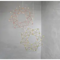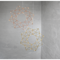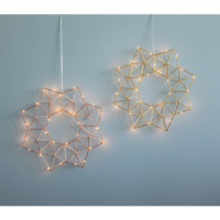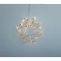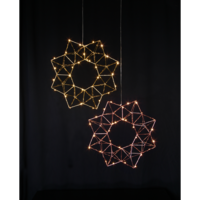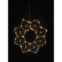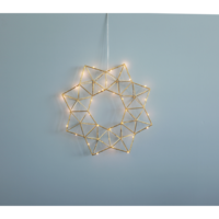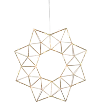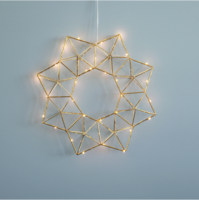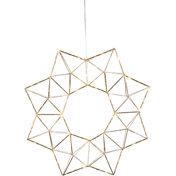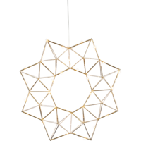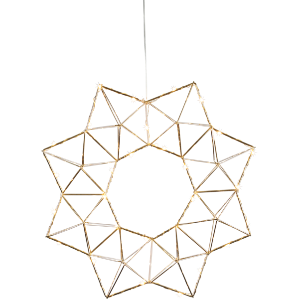Vacker stjärna i mässingfärgad metall för inomhusbruk. Stjärnan har 30 LED-ljuskällor med varmvitt sken. Fin dekoration att hänga i fönstret.