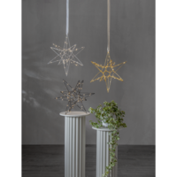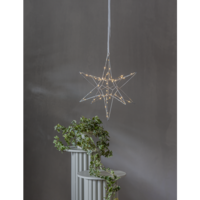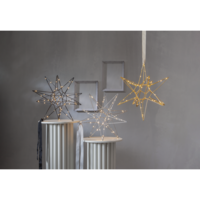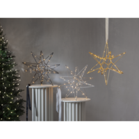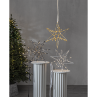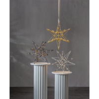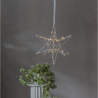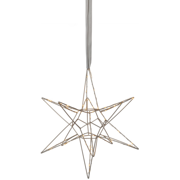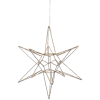 Vacker tredimensionell stjärna i silver metall för inomhusbruk. Stjärnan har 60 LED-ljuskällor med varmvitt sken. Fin dekoration att hänga eller placera på en skänk. En stjärna som kan lysa upp under vinterns alla månader..