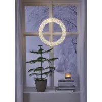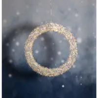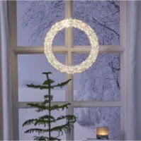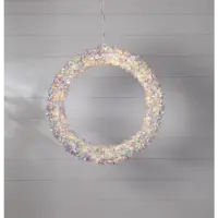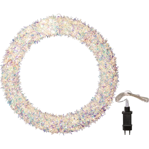 Krans, 45cm i diameter, med effektfullt skimrande PET material, sprider ett mjukt ljus vilket skapar en otroligt mysig atmosfär. IP44 klassad transformator. Tillgänglig i två storlekar.