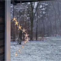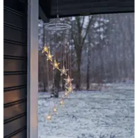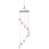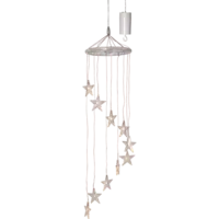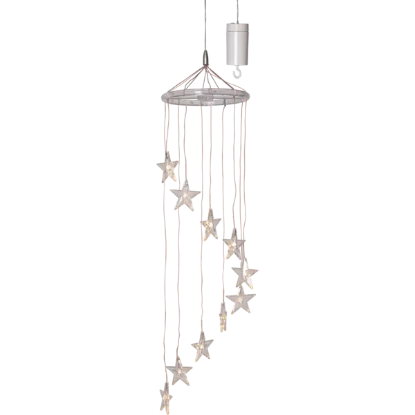 Batteridriven dekoration i form av en mobil, 10 varmvita LED med en transparent stjärna över. Batteridosan klarar utomhusbruk men produkten passar lika bra inomhus.