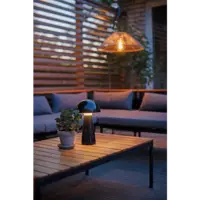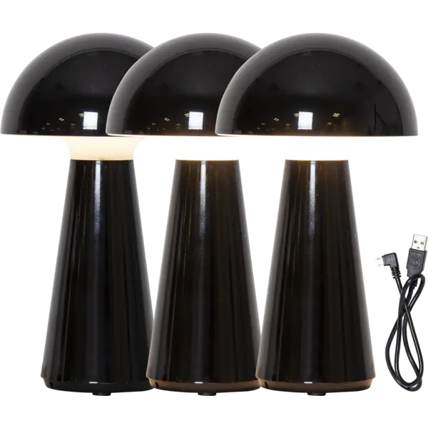 Stilfull portabel uppladdningsbar bordslampa i blank ABS plast. Lika snygg ute som inne. Lampan har 3-stegs funktion, med ett lätt tryck längst upp på skärmen kan man justera ljusstyrkan, 100, 50 eller 10% av full uppladdning. Brinntid ca 5 timmar på 100%, att ladda lampan fullt (görs inomhus) tar 5-6 timmar. Batteri 18650 Li-Ion, 3.7V 2000 mAh, ej utbytbart. Laddsladd med USB uttag medföljer.
