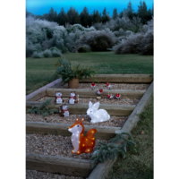 Dekorationsslinga med figur i form av fåglar. Går bra att använda både inom- och utomhus. Härlig dekoration att ha i trädgården, eller varför inte splacera dom vid julgranen eller ytterdörren. Fåglarna har 8 små LED-ljuskällor per fågel, dom lyser fint i mörkret. Drivs av batterier och har timer funktion.
